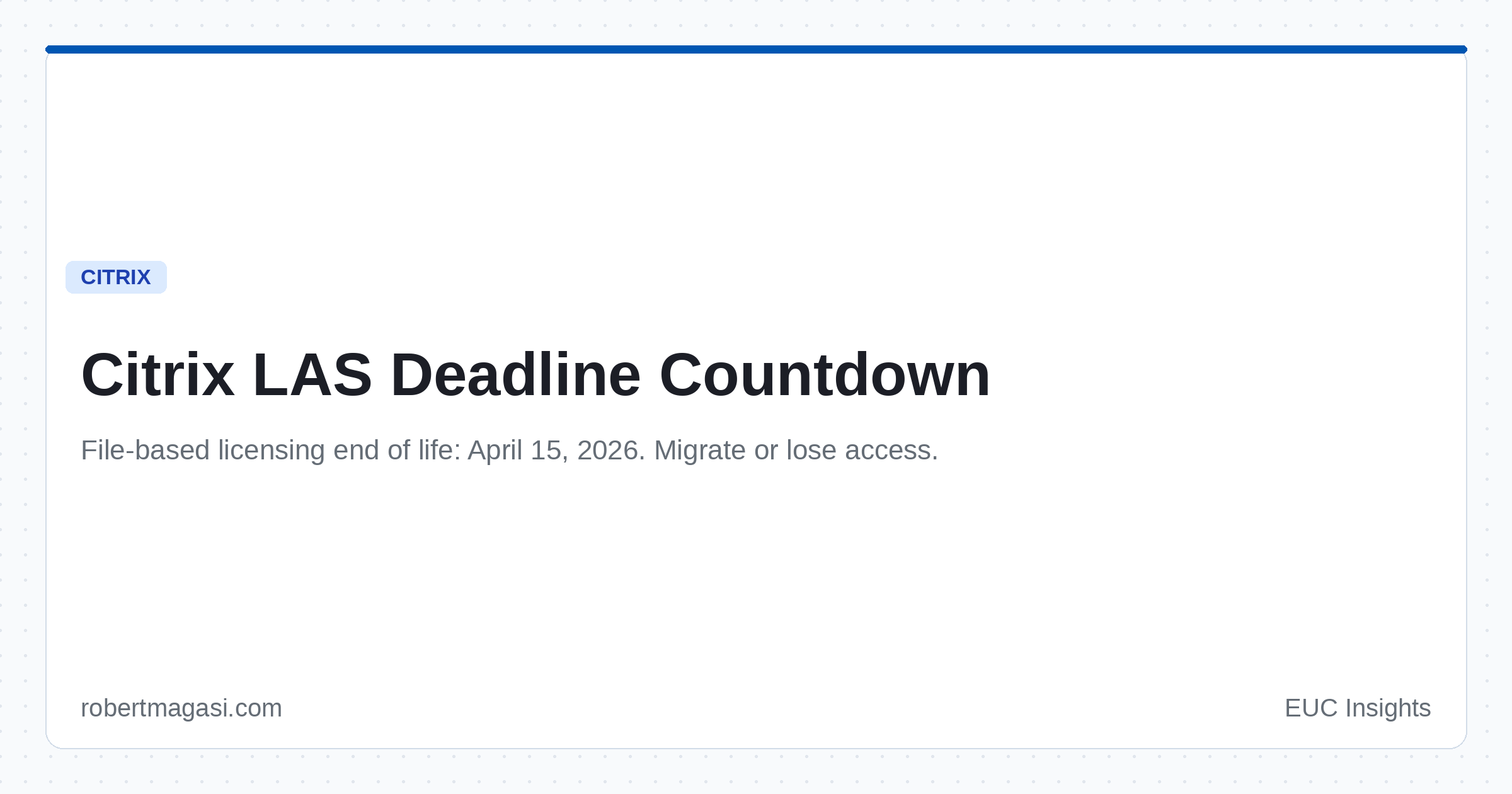 Citrix file-based licensing goes end of life on April 15, 2026. Environments that haven't migrated to LAS will stop working. No grace period.